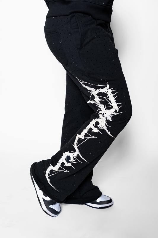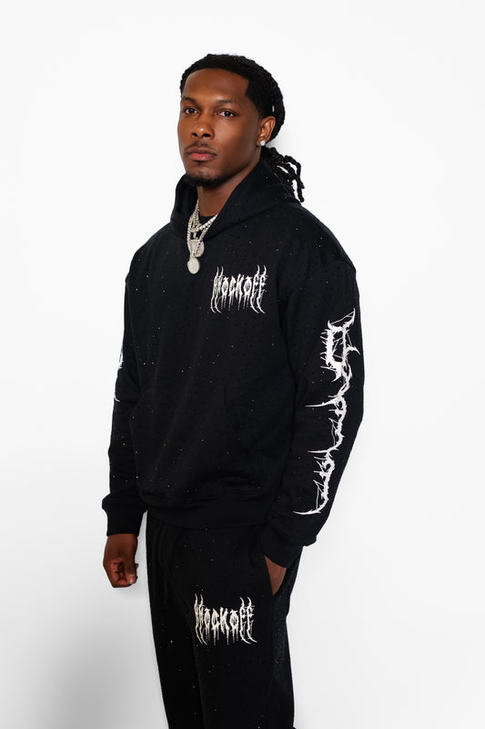 Black Hoodie & flared sweatpants with rhinestones made from French terry fabric and 100% cotton would be a stylish yet comfortable addition to your wardrobe.